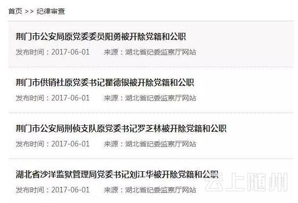 6月1日,湖北省纪委监察厅网站公布了4名官员被“双开”的决定。