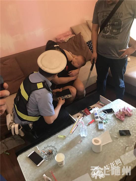 经民警现场突审,年轻女子交代:自己姓余,系该租赁屋的承租人,她膝盖旁边的婴儿,正是她的亲生孩子,刚刚出生11个月。因育有婴儿,余某之前虽然犯有一次故意伤害致死和两次贩卖毒品前科,但均被取保候审。因为长期吸食海洛因成瘾,于是,没有工作的余某租个房子专门以贩养吸,即一边用来居住,一边成为了瘾君子们买卖、吸食毒品的“会所”。躲在门背后抓获的男子,就是当天到她家购买毒品并一起吸食的“客户”。