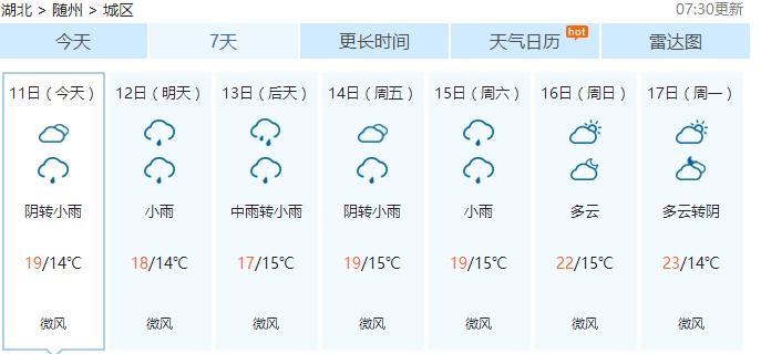 今日我市为阴转小雨,气温为14℃-19℃。最近湖北各地气温都在持续走低,早晚更凉。市中心气象台预计,本周我省西部最高气温不足20℃,东部最高气温也在25℃之下,因此本周多地日平均气温基本在22℃以下,这也意味着我省大部地区本周或将平稳入秋。