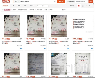 “其实都是编的。”一名卖家向新京报记者坦承,这类笔记实际多来自于学校附近的复印店,学生在复印课堂笔记时,“店里多留了拷贝件,然后挂到网上卖。”而其是否真如商品描述所说,来自于名校高分考生则不得而知。“那些学生证、录取通知书,很多都是从网上下载,然后给个人信息打上马赛克。”