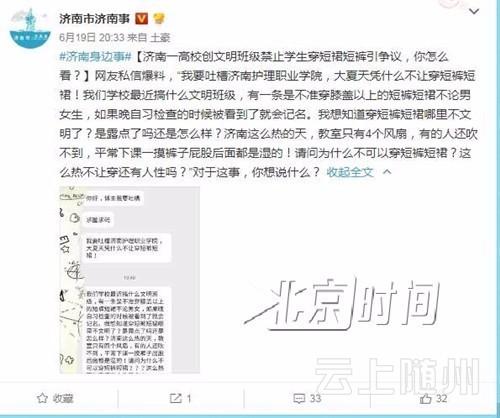 (原题为《济南一高校禁止学生穿短裙短裤引质疑,校方:太短了不雅观》)