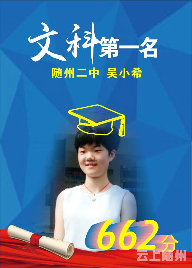 吴小希 语文126、数学149、外语143、文综244,总分662。