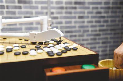 在宁波奇点机器人体验馆,机器人正与一位观众现场围棋“对弈”。新华社发