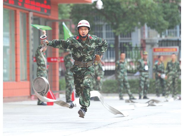 近日,随州市消防部队开展专业化岗位练兵比武竞赛,锻造精兵,进一步提升部队攻坚战斗能力。 (记者 徐 斌摄)