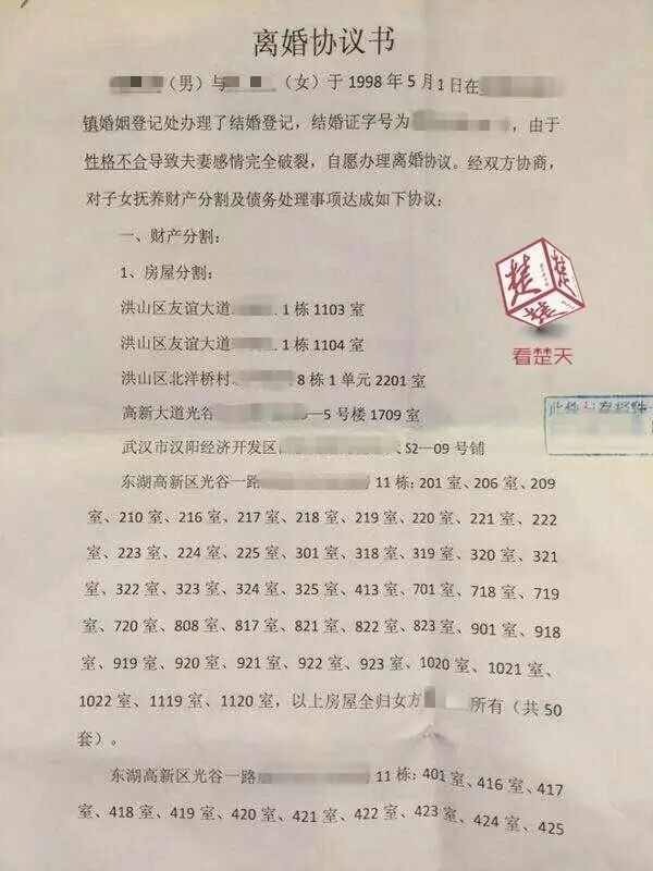 武汉一则离婚协议书在网上疯传