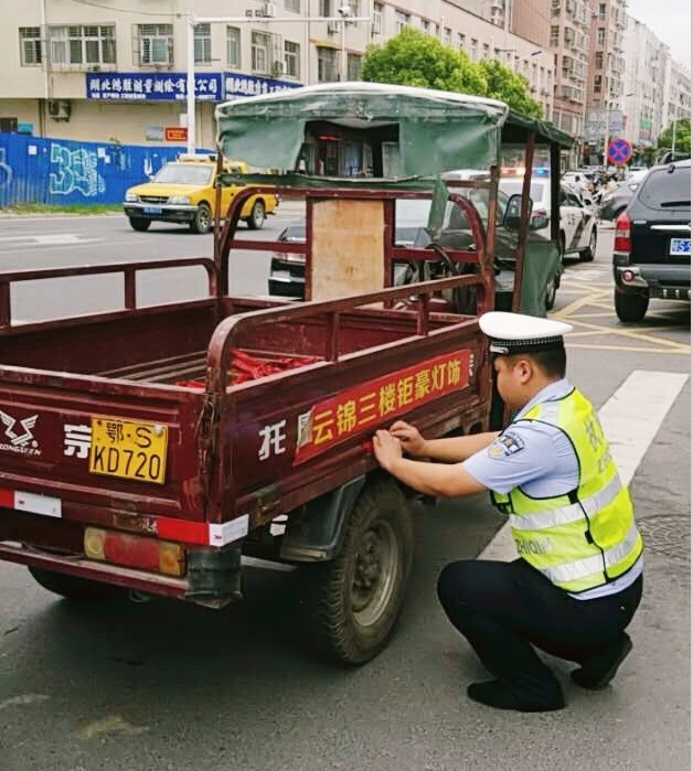 夏季高温来袭,很多五小车辆(人力三轮车、电动三轮车、三轮摩托、农用车、拖拉机)车主便选择傍晚、夜间或黎明作业,光线不好易引发事故。 湖北随州交警广水大队为预防事故发生,自费采购了500余卷反光条,走上大街小巷为“五小车辆”免费粘贴,让车尾“亮”起来。“被看见,更安全”~