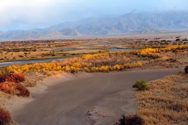 格尔木胡杨林南靠巍巍昆仑山脉,北面是茫茫戈壁盐滩,是青海唯一、也是世界上海拔最高的胡杨林。