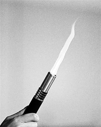 北青报记者随机选择一家在售这种“防狼喷火器”的网店,并购买了一只“防狼喷火器”。这只喷火器外观为圆柱形,黑色金属材质,长度约20cm,重约100g。成年人用一只手即可方便操作,喷火器上只有一个开关进行控制。
