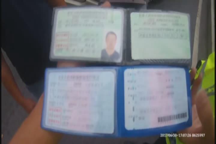 【同期声】你身份证呢?身份证没带。你身上带的还有其他证件没有?没有带,就带了驾驶证行车证。