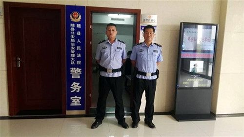 随县公安局治安大队派驻随县人民法院警务室在随县人民法院法警大队正式挂牌成立。随着司法改革逐步深入,法院工作面临的压力和挑战越来越大,无论是应对群体性闹访还是打击“老赖”基本解决执行难活动的深入开展,法院和公安机关的配合越来越密切。县法院根据上级法院指示精神,与县公安局积极接洽,成立了随县公安局治安大队派驻随县人民法院警务室,更好地服务和促进法院审判执行工作。
