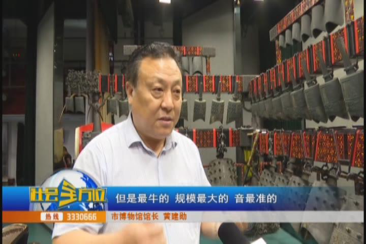 【采访】市博物馆馆长 黄建勋:编钟是一个神器,是很神秘的一种乐器,因为它是最早的青铜乐器,青铜乐器不像现在的钢琴,现在的钢琴可以调弦,材料做得很好,那个时候就通过一种青铜铸造,用青铜来演绎这个乐器,是个很不简单的事。还有个编钟神奇的地方是,欧洲的都是圆钟,我们这个编钟是那个合瓦型的,像两个瓦,半圆形的瓦扣起来一样,我们中国编钟的神奇就神奇在这个地方,这样合瓦型的结构就造就了一钟双音的成就。欧洲的圆钟在钟的边围随便敲一个,就可以敲出一个音出来,绝对没有第二个音,但是我们编钟就不一样了,编钟就是一钟双音,是中华民族老祖先发明的。