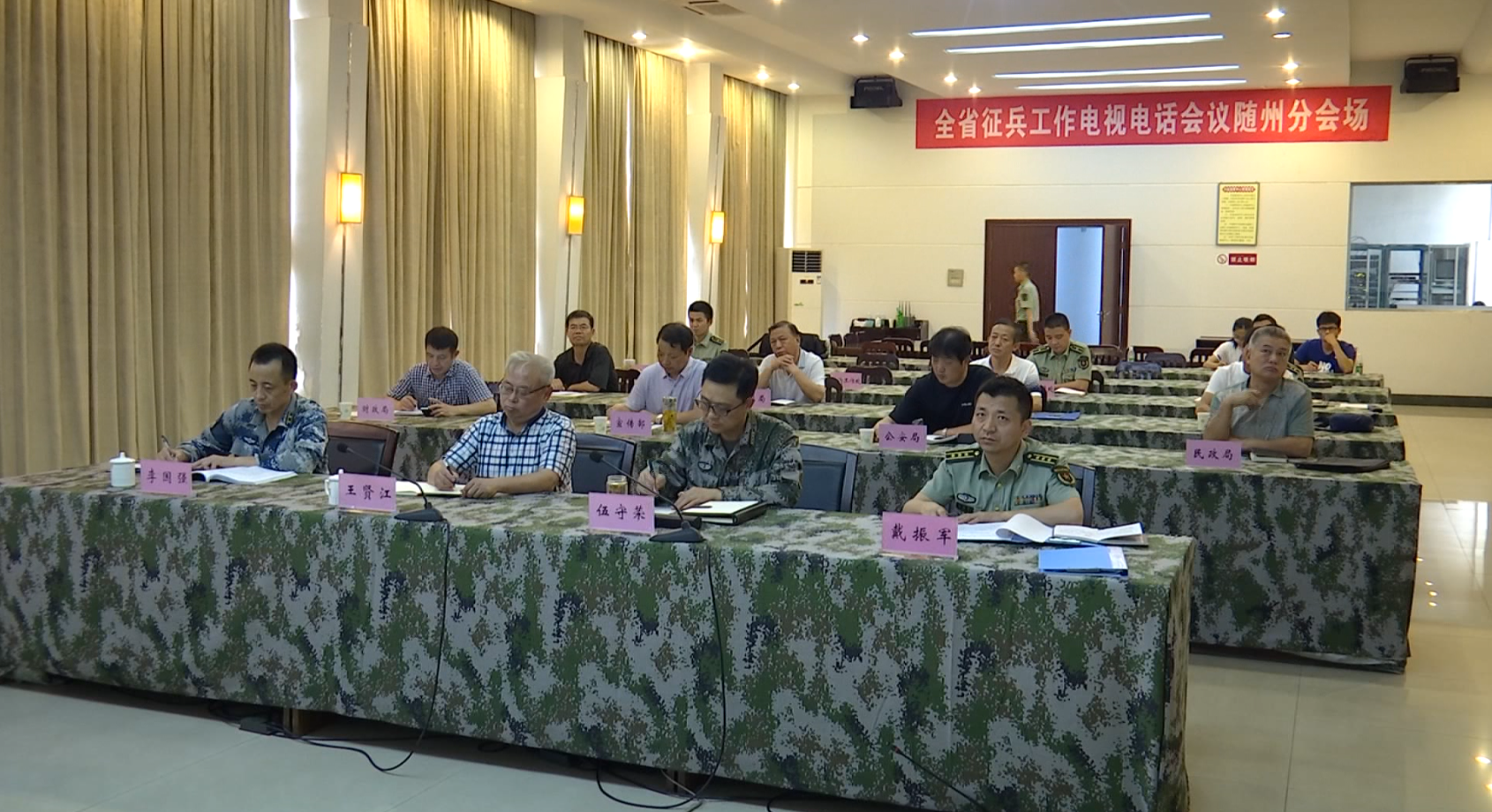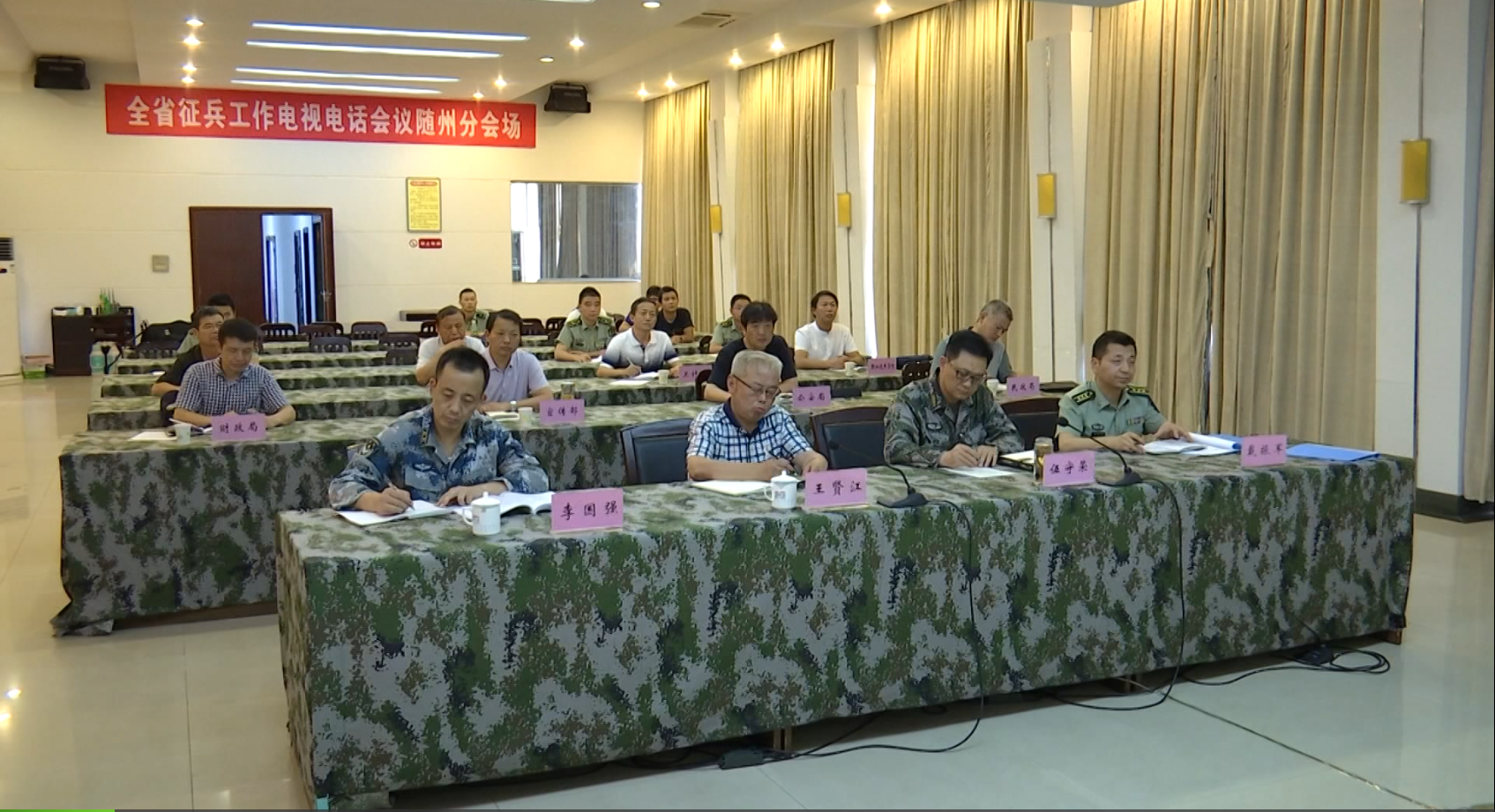 随州军分区司令员伍守荣在随州分会场参加会议。