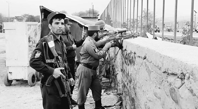 位于阿富汗首都喀布尔的国家安全机构日前遭到塔利班武装袭击,造成200余人伤亡。图为当地警察在袭击现场警戒。新华社发