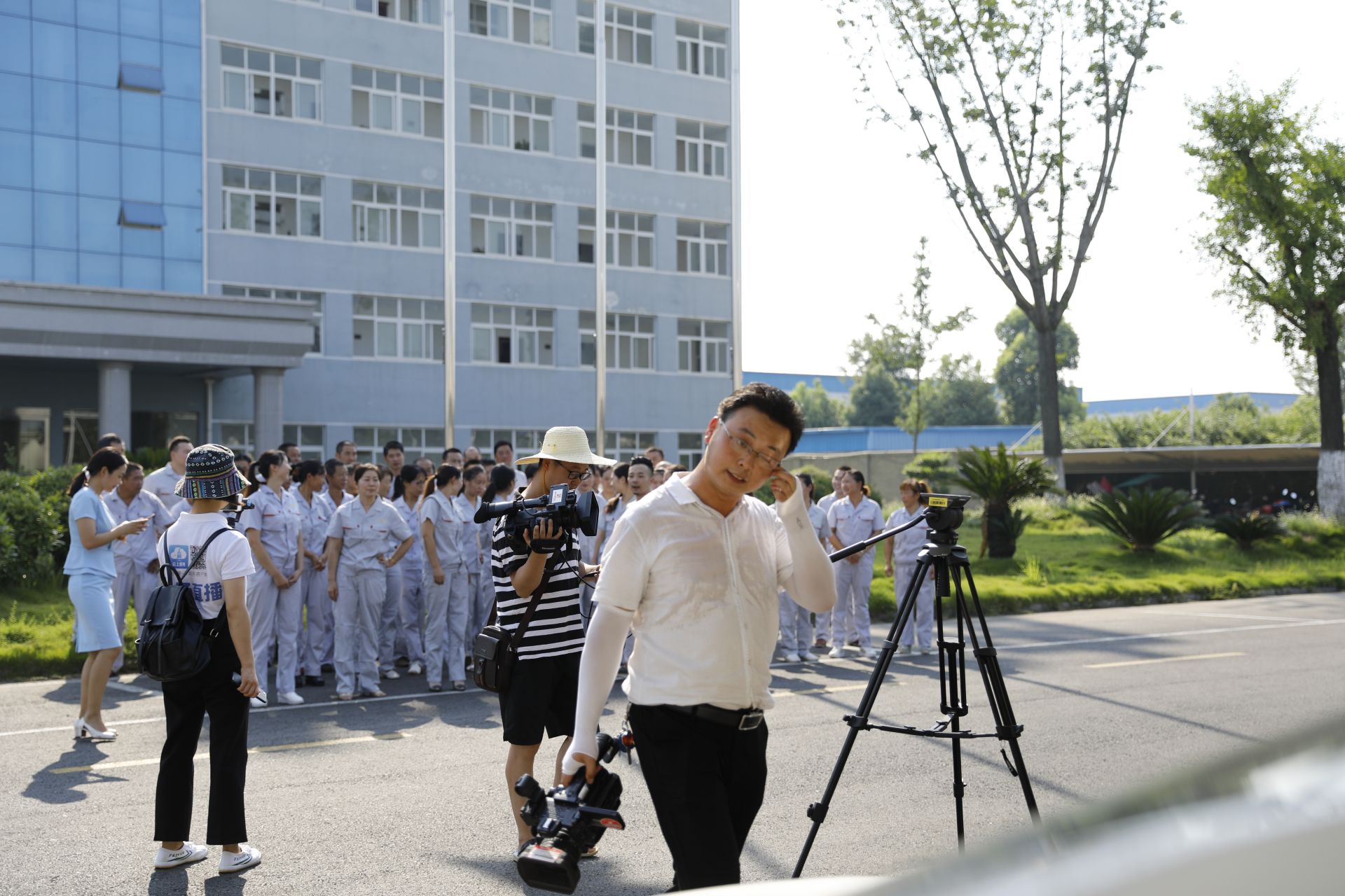 今天的室外温度高达40度左右,我们摄制组的工作人员全部汗流浃背了。