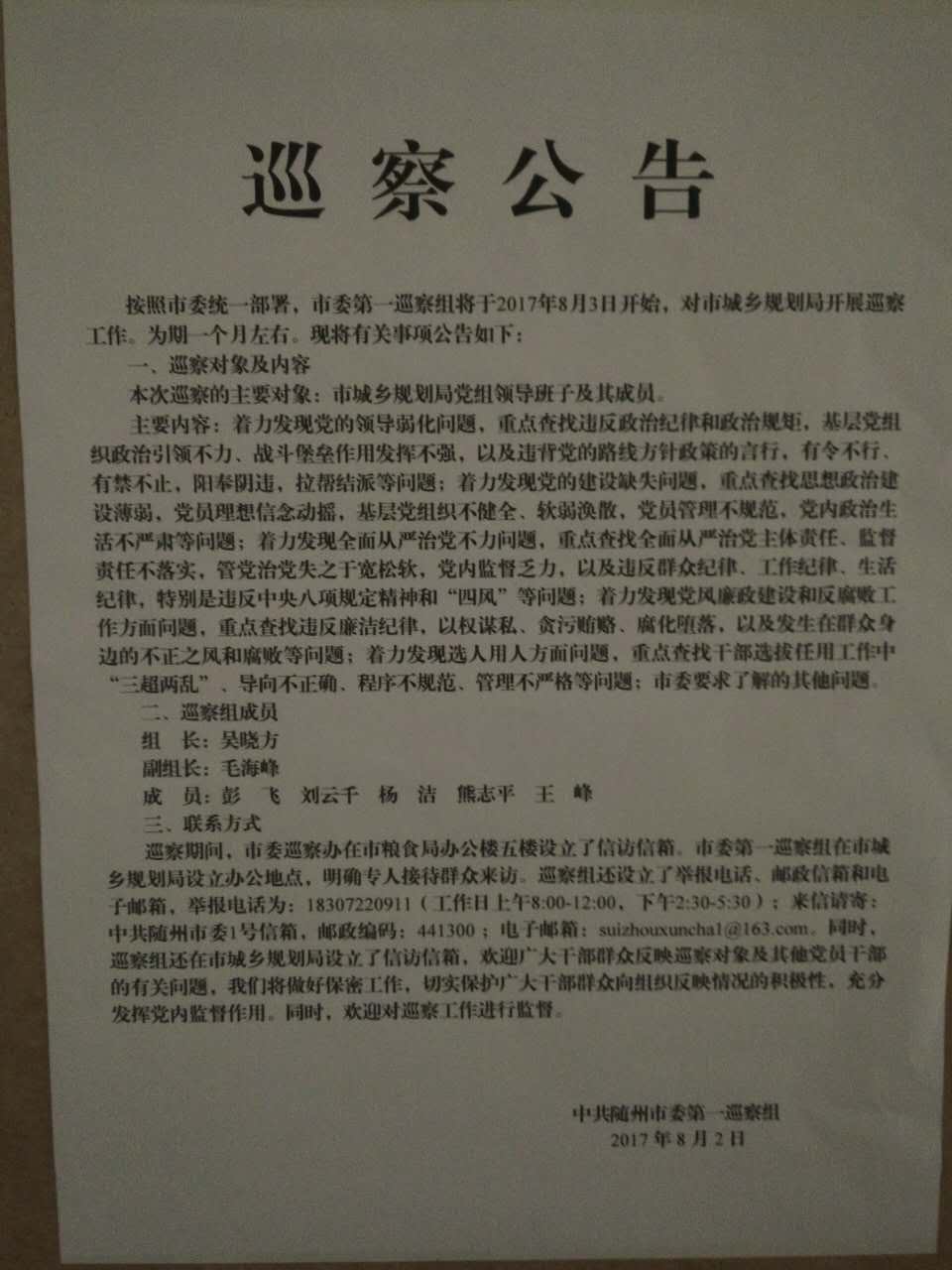 随州市委巡察组发布巡察公告 欢迎群众监督