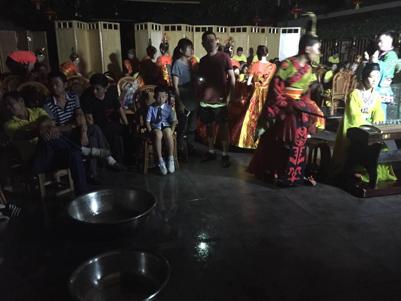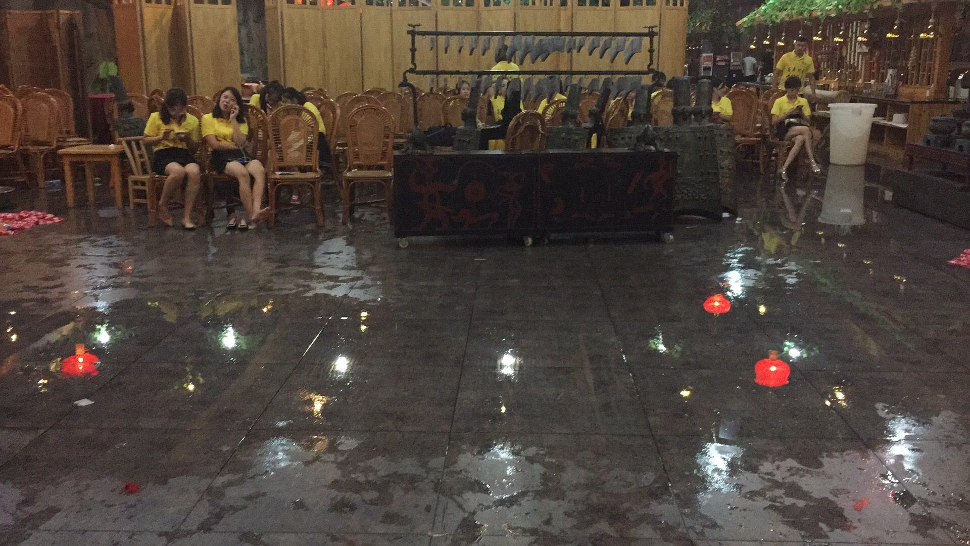 随着时间的流逝,雨水也逐渐减小,大家主动加入到现场清理中。困难面前,全体演职人员既不抱怨也毫不退缩,抓紧每分每秒去清理现场,为排练争取时间。