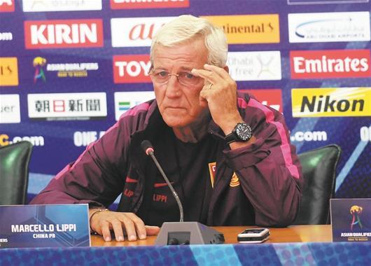 图为:里皮在新闻发布会上