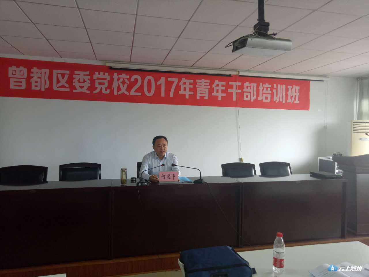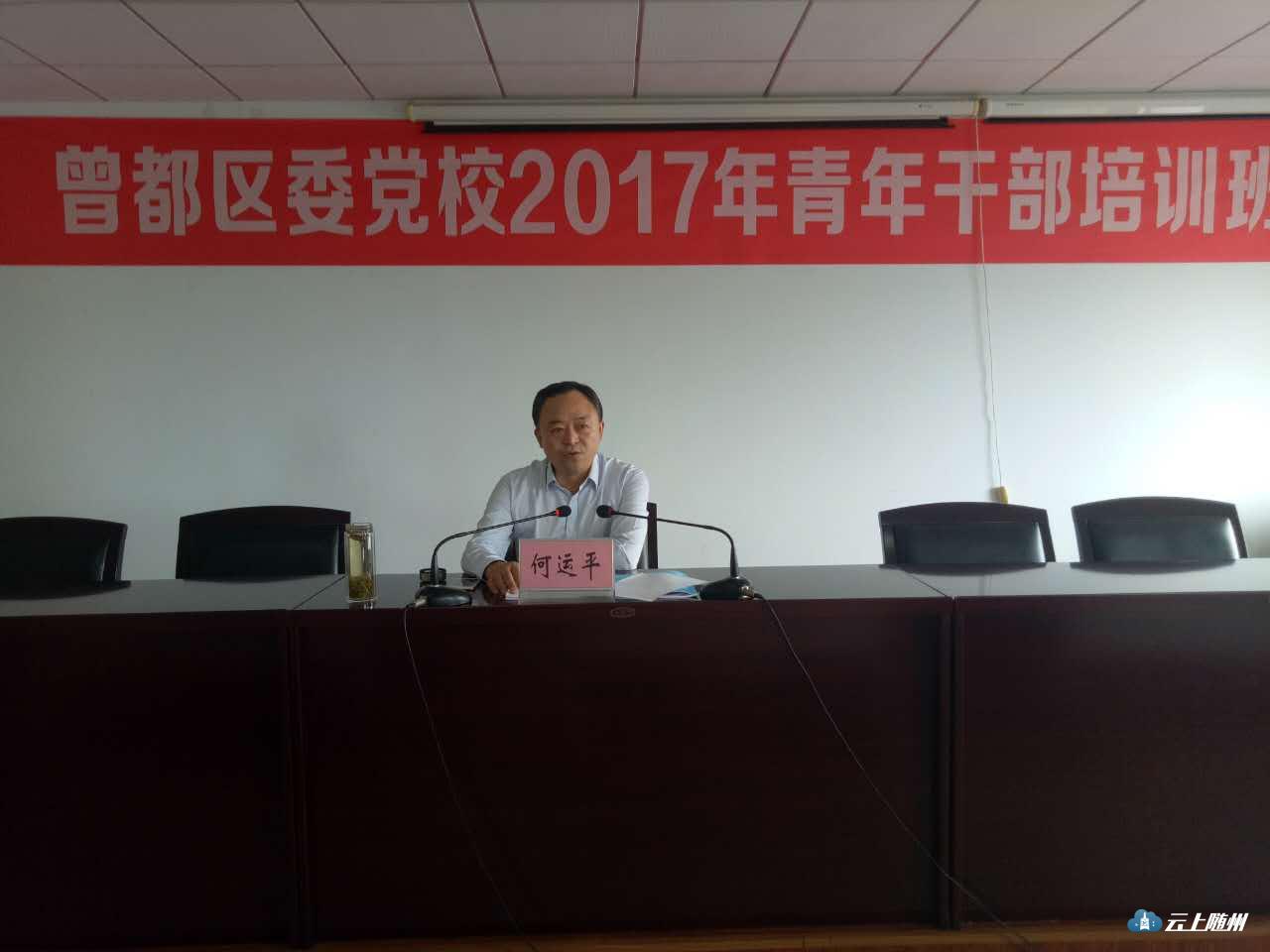 9月4日,在曾都区委党校2017年青年干部培训班上,区委书记、区委党校第一校长何运平为参加学习的青年干部讲党课。