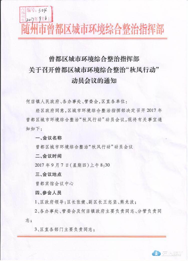 9月7日,曾都区召开城市环境综合整治“秋风行动”动员会议。