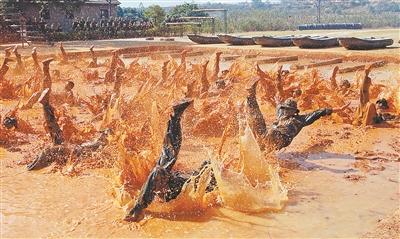 多种训练方式挑战生理极限——学员仰卧在沙滩上,任凭海浪带着泥沙灌入口鼻,紧接着,4个人扛300多斤的圆木在沙滩上急行;每名学员徒手挖大约和人肩同宽、深约2米的大坑,挖完人跳进去之后,教官扔入瓦斯弹;脱掉上衣躺在位于草丛深处的垃圾堆里,任凭蚊虫噬咬;两手上举,全身在四处都是鳄鱼的河水中浸泡……