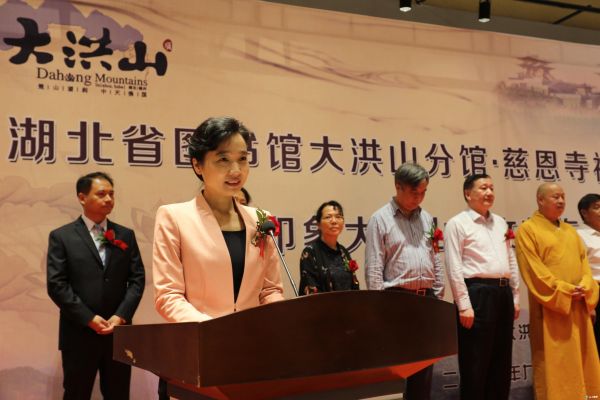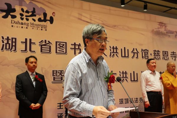 市委常委、统战部长冯茂东,中佛协副会长、随州市佛协会长、大洪山慈恩寺住持印顺大和尚,省民宗委副巡视员李泽生,湖北省图书馆党委书记贺定安,共同为湖北省图书馆大洪山分馆、慈恩寺禅修书院揭幕。副市长郑晓峰主持活动。中佛协常务理事、河南省桐柏山太白顶云台禅寺、河南省光山县大苏山净居寺住持清远大和尚,武汉图书馆馆长李静霞,市委宣传部、市文联、市民宗局、市旅游局、市文体局、市图书馆等相关单位参加活动。