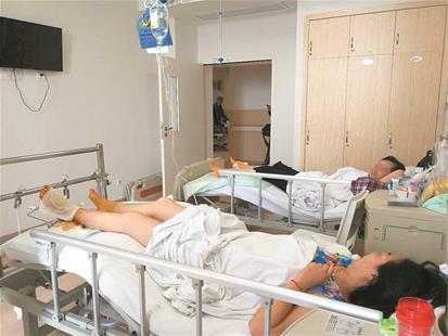 图为:两位因骑行共享单车受伤的女患者同住一间病房 (通讯员雷波、荆彤摄)