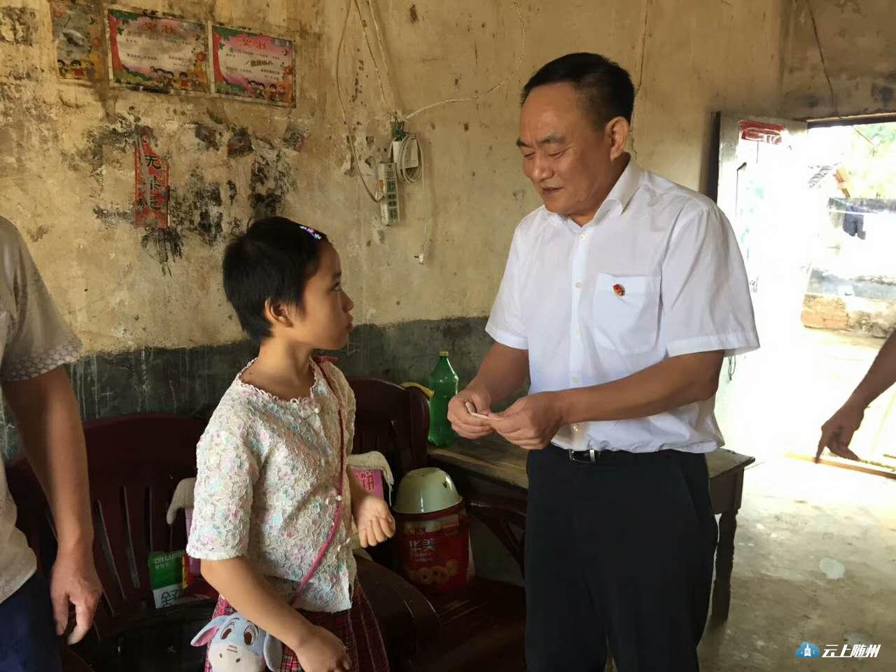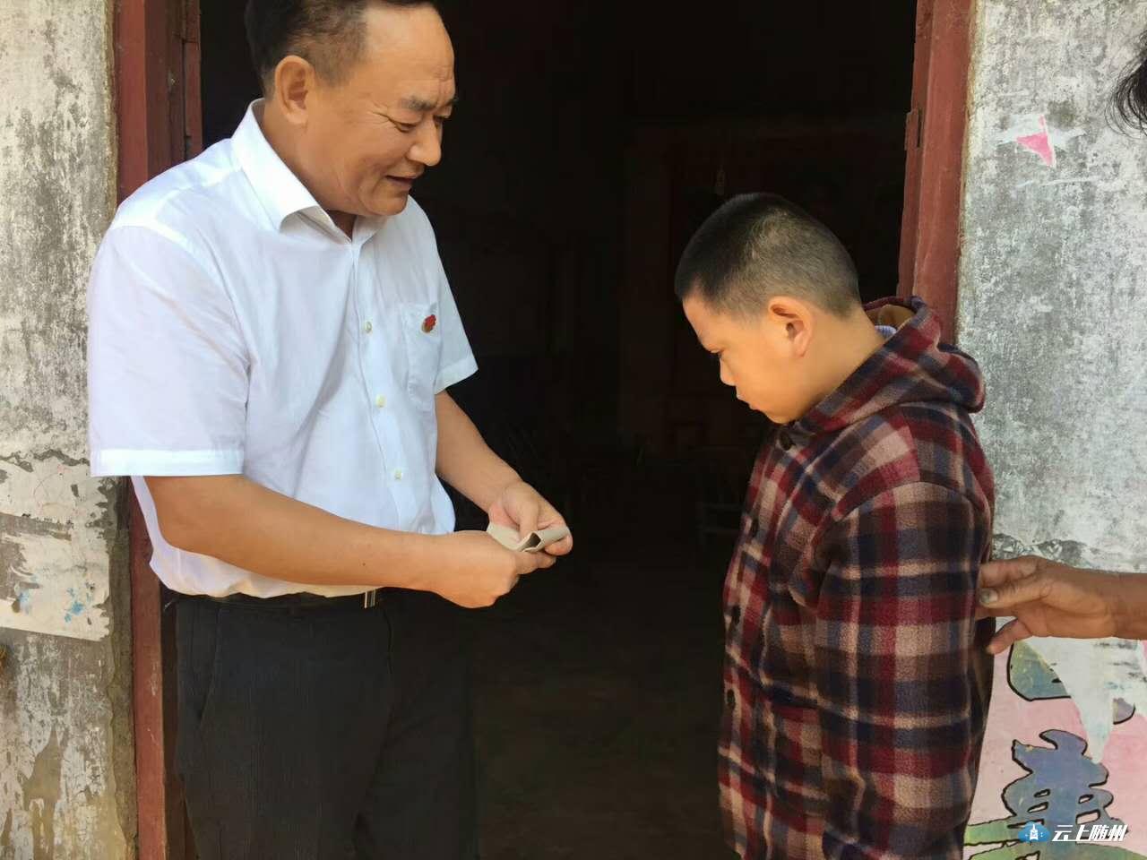 9月8日上午,市国土资源局机关党支部,金鸡山村党支部联合支部主题党日活动并进行了金秋扶贫助学行动,向新街镇金鸡山村捐助五万元扶贫资金。 图为市国土资源局局长周元华向新街镇金鸡山村捐助扶贫资金 图为市国土资源局局长周元华亲自将扶贫款送到贫困学生家里