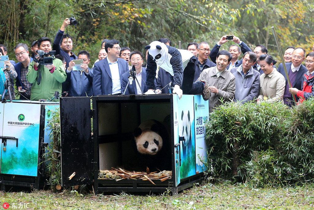 2016年10月20日,四川雅安大熊猫“华妍”和“张梦”将走进石棉县栗子坪的山野,回到它们父祖栖息过的家园。这两只大熊猫均属雌性,来自中国大熊猫保护研究中心,经过了长时间的野化训练。此前,我国实施人工繁育大熊猫放归自然5次,两只大熊猫夭折,3只基本适应了野外生活。