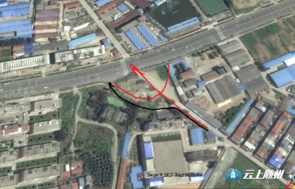 如图所示,图中红线半园部份在建设一栋大楼,该建筑位于青年西路瓜园巷子口南郊中心小学左侧,原来往南郊中心小学方向是一条笔直的街巷,现在被这栋大楼临街阻挡,来往的居民和接送孩子上学的市民只能绕道而行(如图所示的黑线),人为的制造拥堵和不便。也为附近曾都一中、擂鼓墩中学那些上下晚自习的学生造成一定的安全隐患! 请问市规划局,这幢建筑合法吗?如果合法,是如何审批的?使本来一条笔直的路,非要规划成要人们绕行呢?