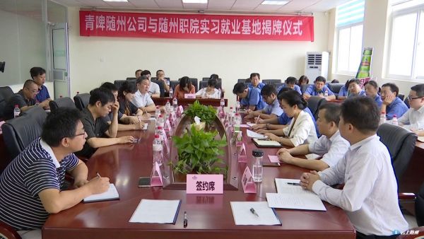 青啤随州公司与随州职业技术学院实习就业基地签约揭牌仪式在青啤随州公司举行,副市长郑晓峰出席揭牌仪式并讲话。