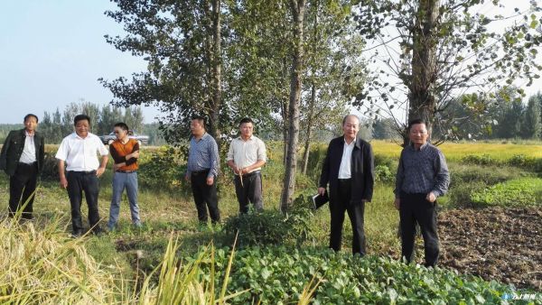 10月10日,市农业局到农业生产一线察看水稻倒伏受灾情况,研究解决方案。