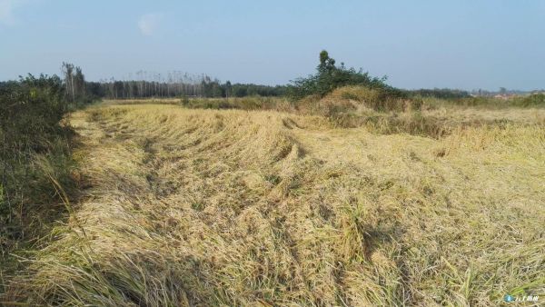 市农业局到田间察看水稻倒伏受灾情况