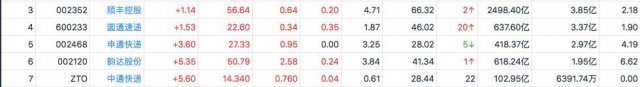 申通快递上涨 3.60%,市值增加 14.53 亿元。
