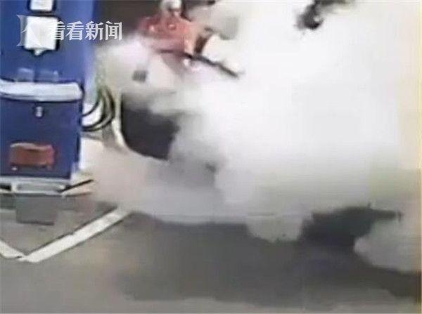 视频中一名白衣青年开车至加油站加油,然而他却无视旁人和工作人员劝阻开始抽烟。