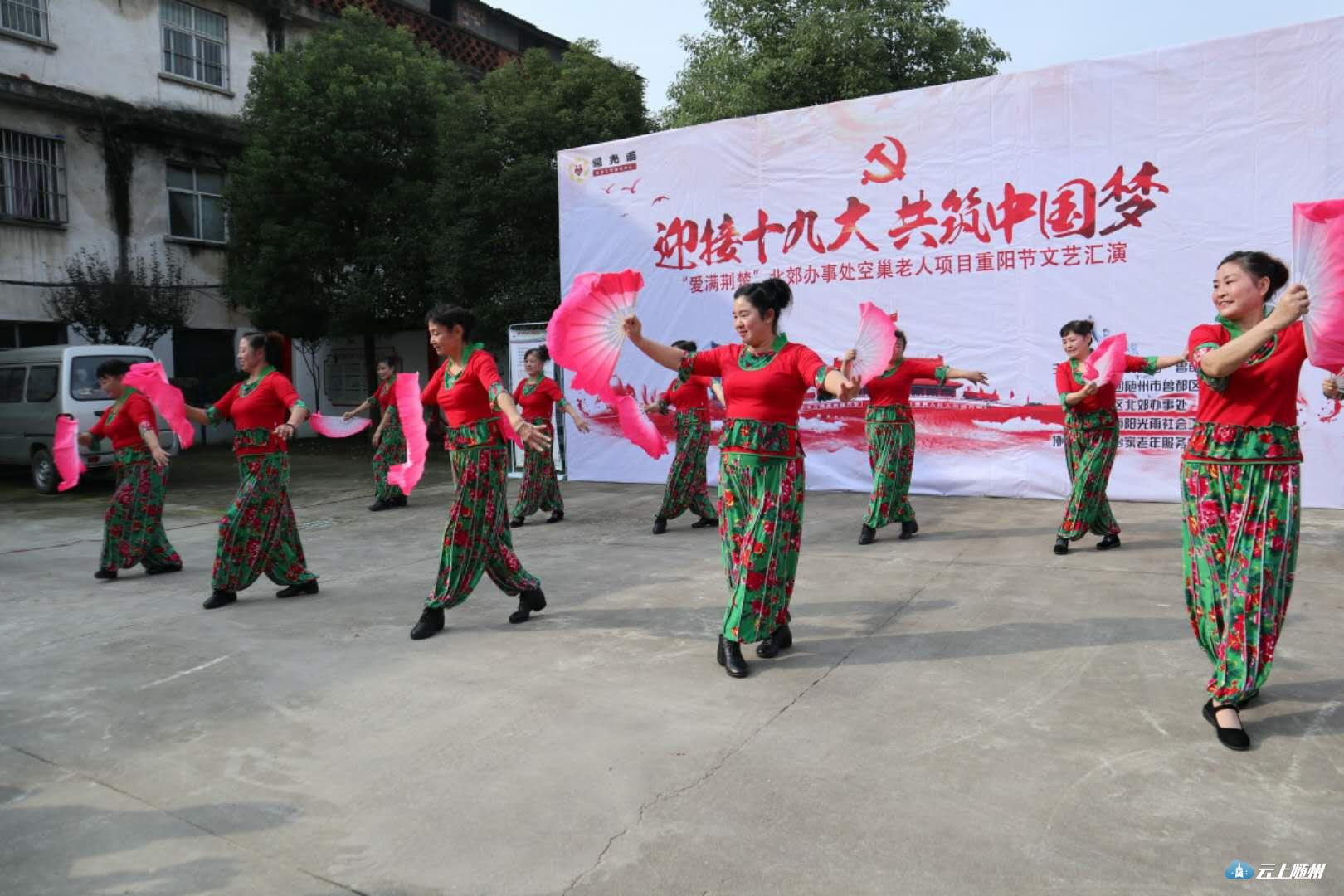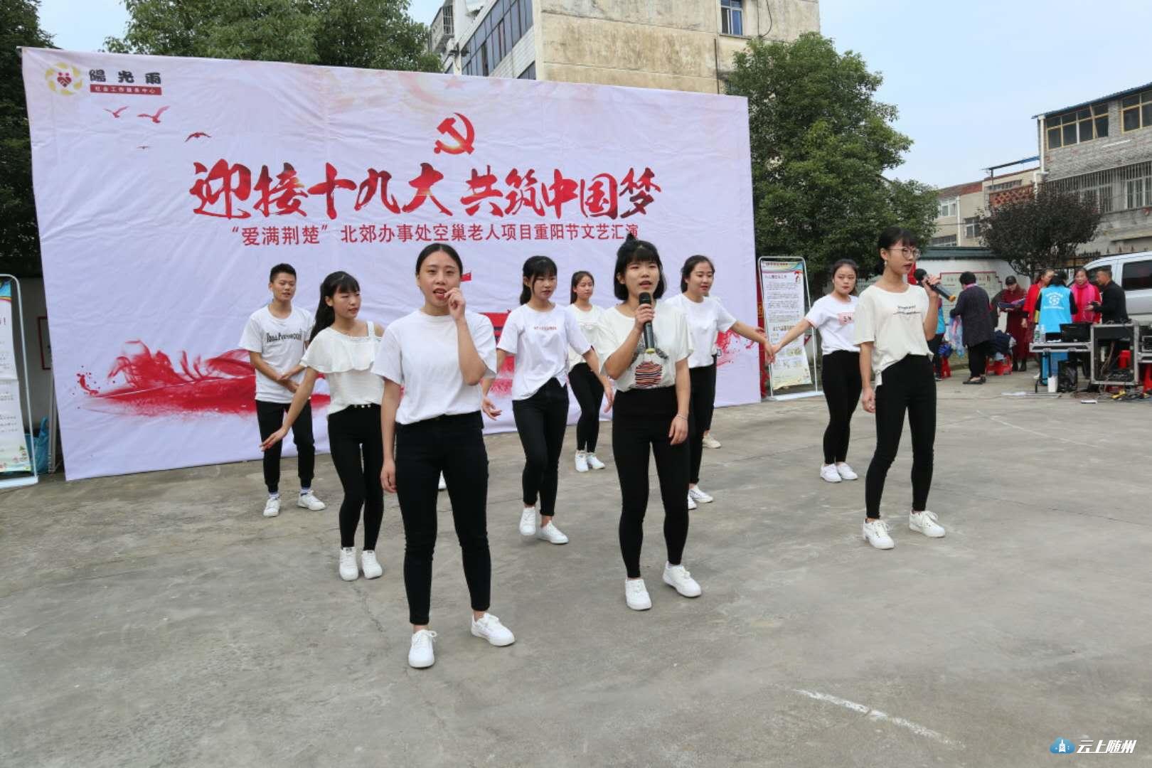 为庆祝党的十九大胜利召开,10月21日,随州市民政局、曾都区民政局、共青团随州市曾都区委会员会、曾都区北郊办事处和随州市阳光雨社会工作服务中心主办,八里岔社区、碾子巷社区、随州怡家老年服务中心协办的“我的节日——‘喜迎十九大,共筑中国梦’”暨重阳节大型文艺汇演精彩上演。