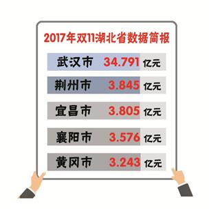 湖北省内,除了武汉高居消费榜之首,荆州、宜昌、襄阳、黄冈在这个天猫双11的网购花费均超过3亿元。