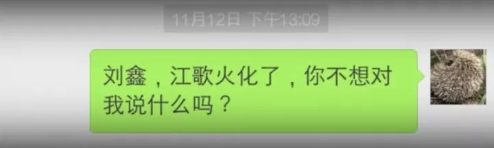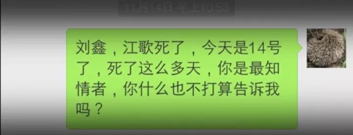 正当江妈妈和姥姥沉浸在巨大的伤痛中无力自拔时,江妈妈的手机上跳出了刘鑫自江歌死后,发来的第一条消息。