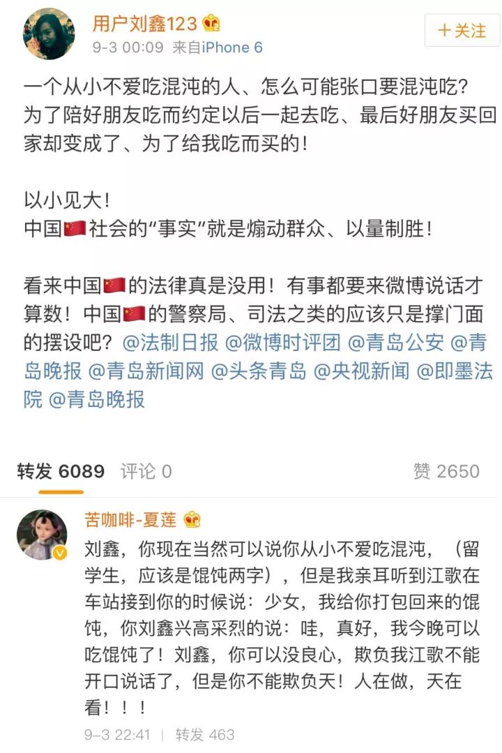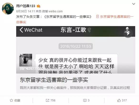 2017年8月30日,在见面后不到一周时间里,刘鑫又发了一篇洗白的长微博,在微博上直接开撕,骂网友、骂社会……