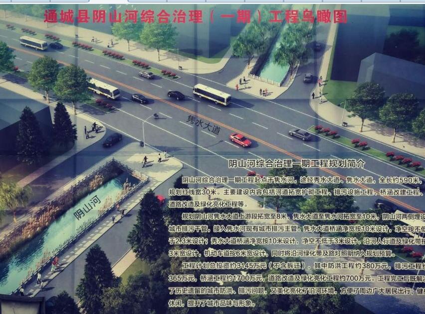 城市蓝线是指城市规划确定的江河、湖、水库、渠和湿地等城市地表水体保护和控制的地域界线。胡中雄说,此次改造采取系统建设,就是考虑到生态环境的修复,以扩展水体的存在空间,给子孙留下生态发展的空间。“阴山河工程计划总投资约3145万元(不含拆迁),其中防洪工程约380万元、排污工程约365万元、桥涵工程约1700万元、道路改造及绿化亮化工程约700万元。”