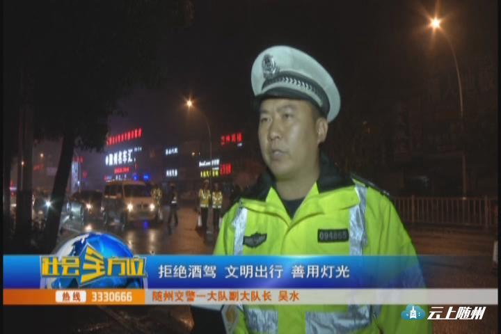 【采访】随州交警一大队副大队长 吴水:酒驾,不按规定使用灯光,极易造成交通事故,不系安全带,在发生交通事故的时候,将对我们的身体造成极大的伤害,在此我呼吁广大交通驾驶员朋友,拒绝酒驾,文明出行,善用灯光,系好保护生命的安全带。