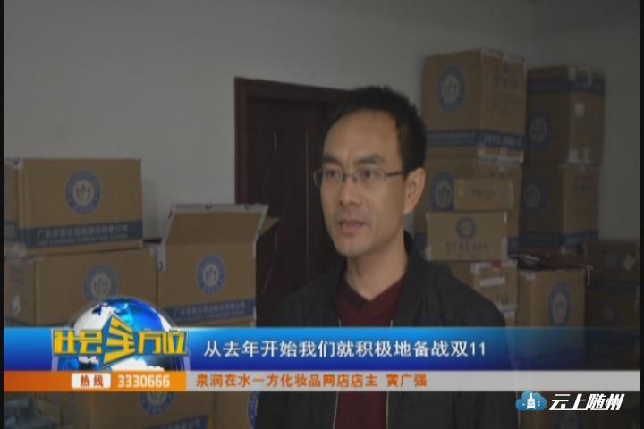 【采访】泉润在水一方化妆品网店店主 黄广强以前我不太重视双11,因为我的销售一直都比较稳定,一直到去年的时候,我感觉到淘宝对这块的重视力度达到空前,而且所有的网民,网购的消费者,也很期待这个节日,所以我们不得不重视,从去年开始我们就积极地备战双11,而且取得了非常好的业绩,双11我们大概卖了一千单左右,平时也就一百单左右。