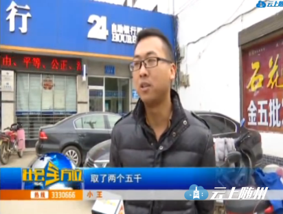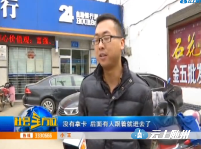 小王:“下午5点半我过来在这边左手边第一个取款机里面取钱,当时因为有点事比较急,我把钱取了之后我就直接走了,没有拿卡,后面有人跟着就进去了,进去之后他直接在我的银行卡里面操作,取了两个5000,取了我的1万块钱走。”