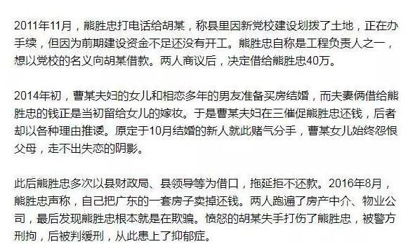 公开资料显示,熊胜忠出生于1971年5月,2016年11月被当地公安局刑事拘留,一个月后被批捕。