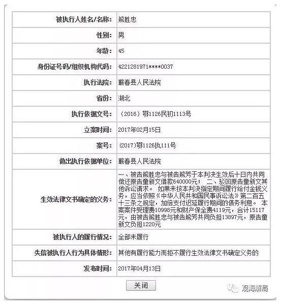 看法新闻记者注意到,这个70后小官曾在去年6月、今年4月两次上了老赖黑名单,而这背后是此人长期做生意,再加上赌钱,不断赔光。